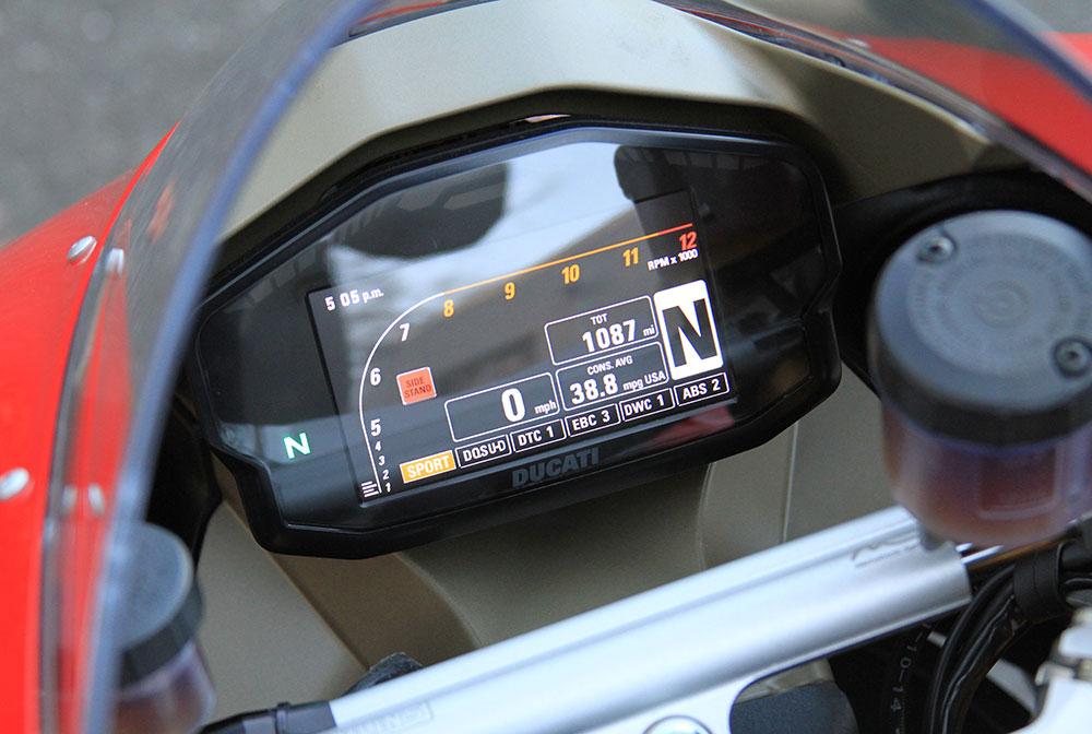 With a better power-to-weight ratio than a Formula One car, the Panigale produces slightly over 200 horsepower, or about what you'd get from a MotoGP race bike of only a few years ago. Combine that with a plethora of technology, and you get a bike that is almost forgiving to ride, at least by Ducati standards. Ducati Quick Shift (DQS) offers clutchless upshifts and downshifts for even faster acceleration. Ducati Traction Control (DTS) allows you to actually use the full 200 horsepower in virtually all conditions. Engine Braking Control (EBC) automatically adjusts the ride-by-wire throttle bodies to provide just the right amount of engine braking under deceleration. Ducati Wheelie Control (DWC) keeps the front end on the road without ruining the fun. Combine all that amazing technology with the most advanced ABS brakes on any production motorcycle, and you get a bike that is not only amazingly fast, but easy and enjoyable to ride.